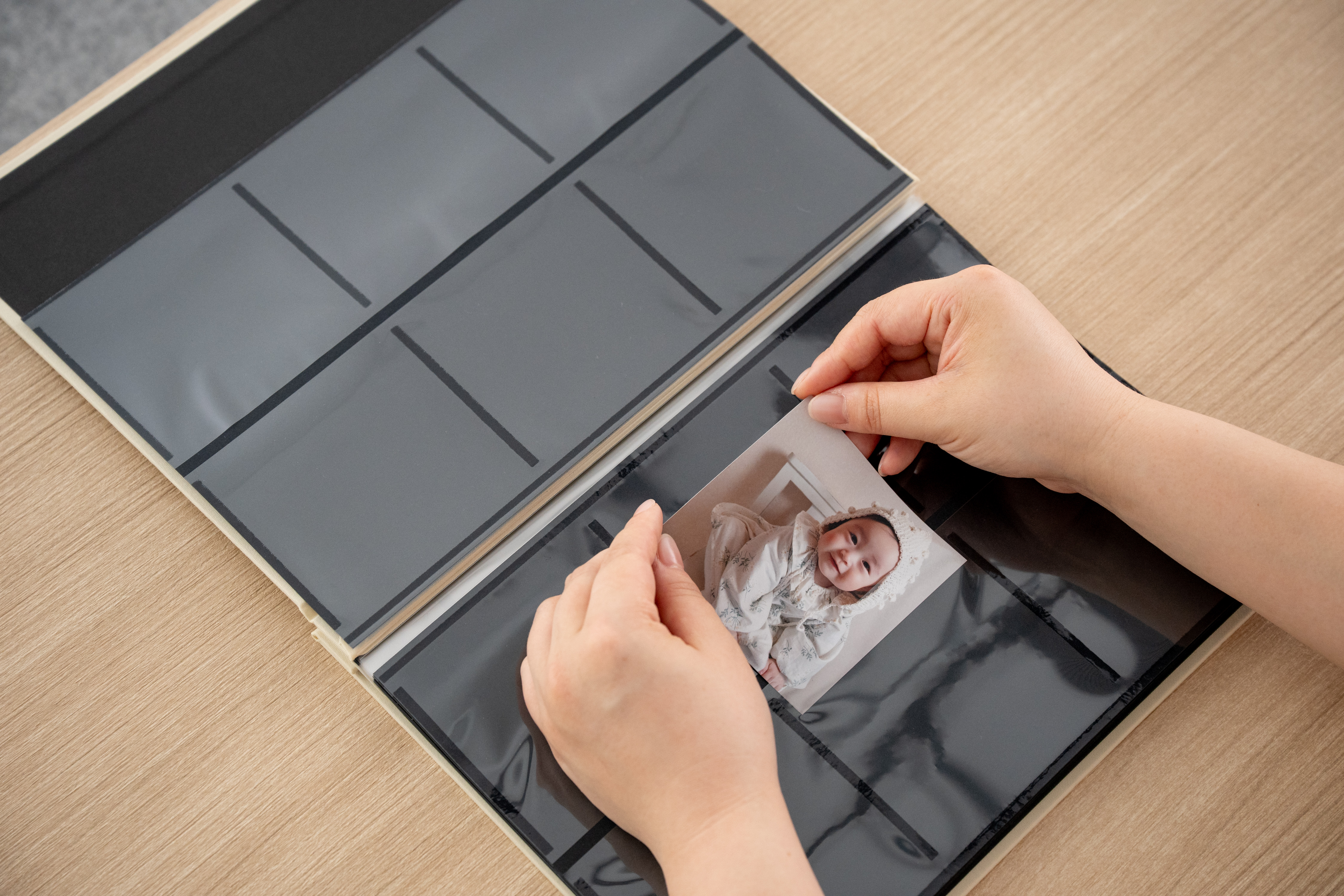 ※紙ポケット台紙は、シワが少なく、写真を入れた状態が美しく見える素材を使用しております。